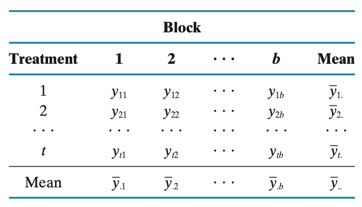\(y_{ijk}\): A 요인의 i수준, B 요인의 j수준을 받은 k번째 실험단위의 반응값
