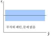 둘째, 등분산성이다. 설명변수의 값이 달라짐에 따라 잔차의 분산이 달라지지 않아야 한다. 즉, 잔차가 일정한 폭을 유지하며 퍼져 있어야 한다.
