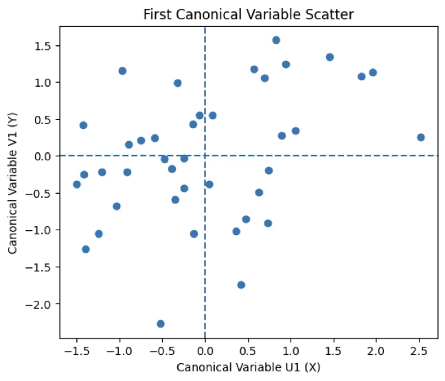 그럼에도 불구하고 정준상관분석은 실무 연구에서 자주 사용되는 기법은 아니다. 해석이 직관적이지 않고, 표본 크기와 가정에 대한 요구가 상대적으로 크기 때문이다.