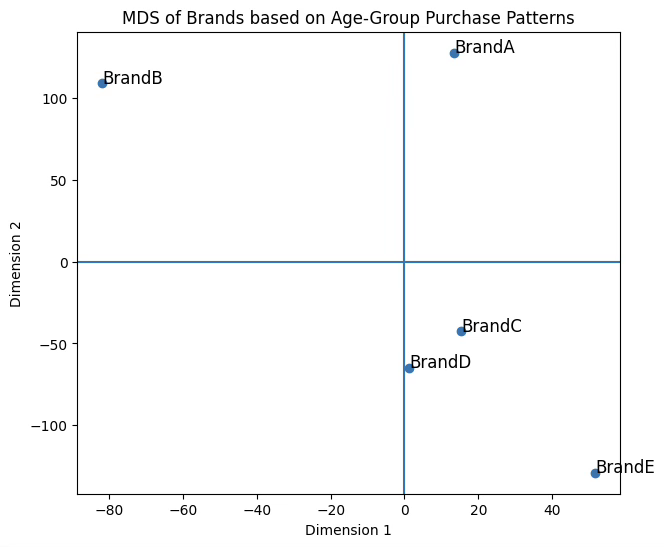 군집분석은 거리 또는 유사성이 가까운 개체들끼리 묶어 집단을 형성하는 데 초점을 둔 분석 방법이다. 즉, 개체들을 몇 개의 군집으로 분류하는 것이 주된 목적이다. 반면 다차원척도법은 개체 간 유사성을 2차원 또는 3차원 공간에 좌표 형태로 나타내어, 전체 구조를 시각적으로 파악할 수 있게 하는 데 목적이 있다. 따라서 군집분석이 집단화의 결과를 제공하는 분류 기법이라면, MDS는 개체들 사이의 인지적·심리적 또는 수량적 거리 구조를 시각적으로 해석할 수 있는 좌표를 제공하는 차원 축소 기법이다.
