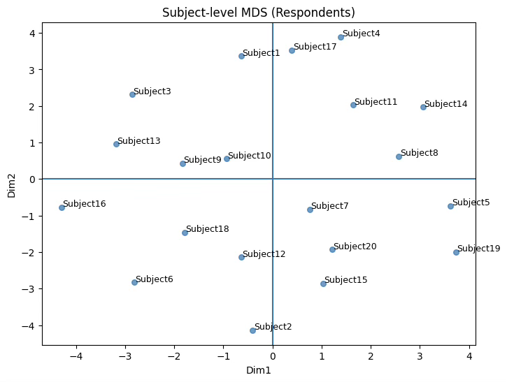 반대로 응답자의 평가는 순서 정보만을 담고 있으며, 각 점수 간 간격이 응답자마다 다르게 해석될 가능성이 큰 경우에는 non-metric MDS를 적용하는 것이 타당하다. 예를 들어 ”A-B가 A-C보다 더 유사하다”라는 순서적 정보만 신뢰되는 상황에서는 점수의 등간성을 가정하기 어렵기 때문에 순서(ordinal) 관계만을 이용하여 비모수적 변환 후 분석을 수행한다.
