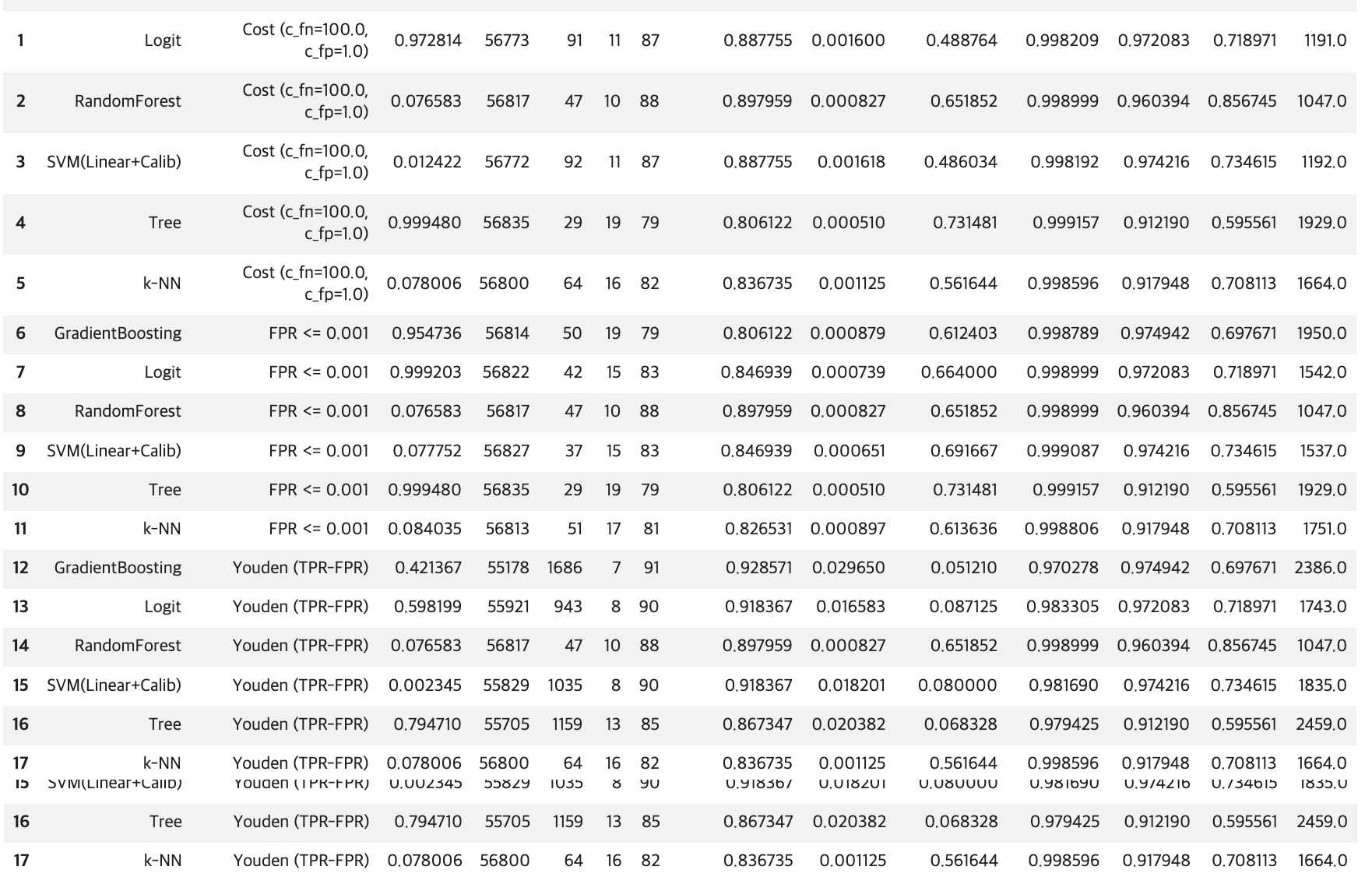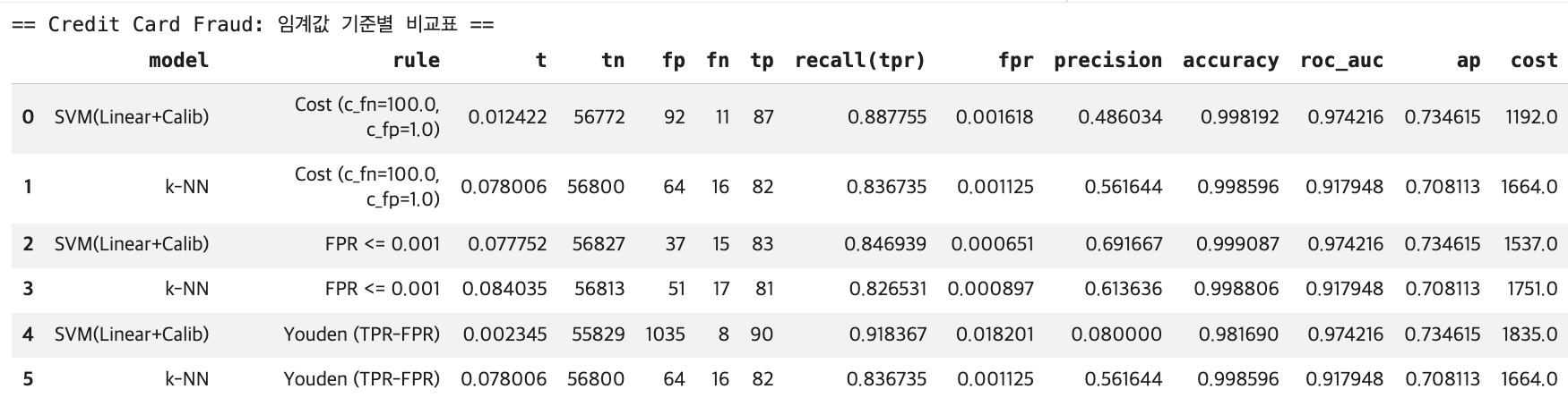 c_fn, c_fp = 100.0, 1.0 # FN(사기 놓침) 비용을 크게
