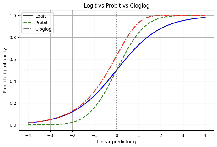 따라서 연결함수는 단순히 수학적 편의가 아니라, 확률모형으로서의 타당성을 확보하고 다양한 분포를 회귀분석에 활용할 수 있게 해주는 핵심 장치라고 할 수 있다.