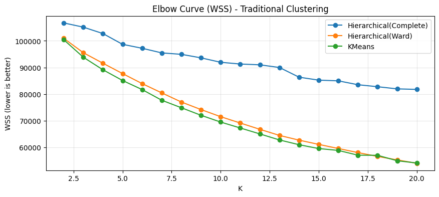 K=20, overall_purity(majority vote)=0.8397, ARI=0.6881, NMI=0.7950, silhouette=0.1528, WSS=54003.2