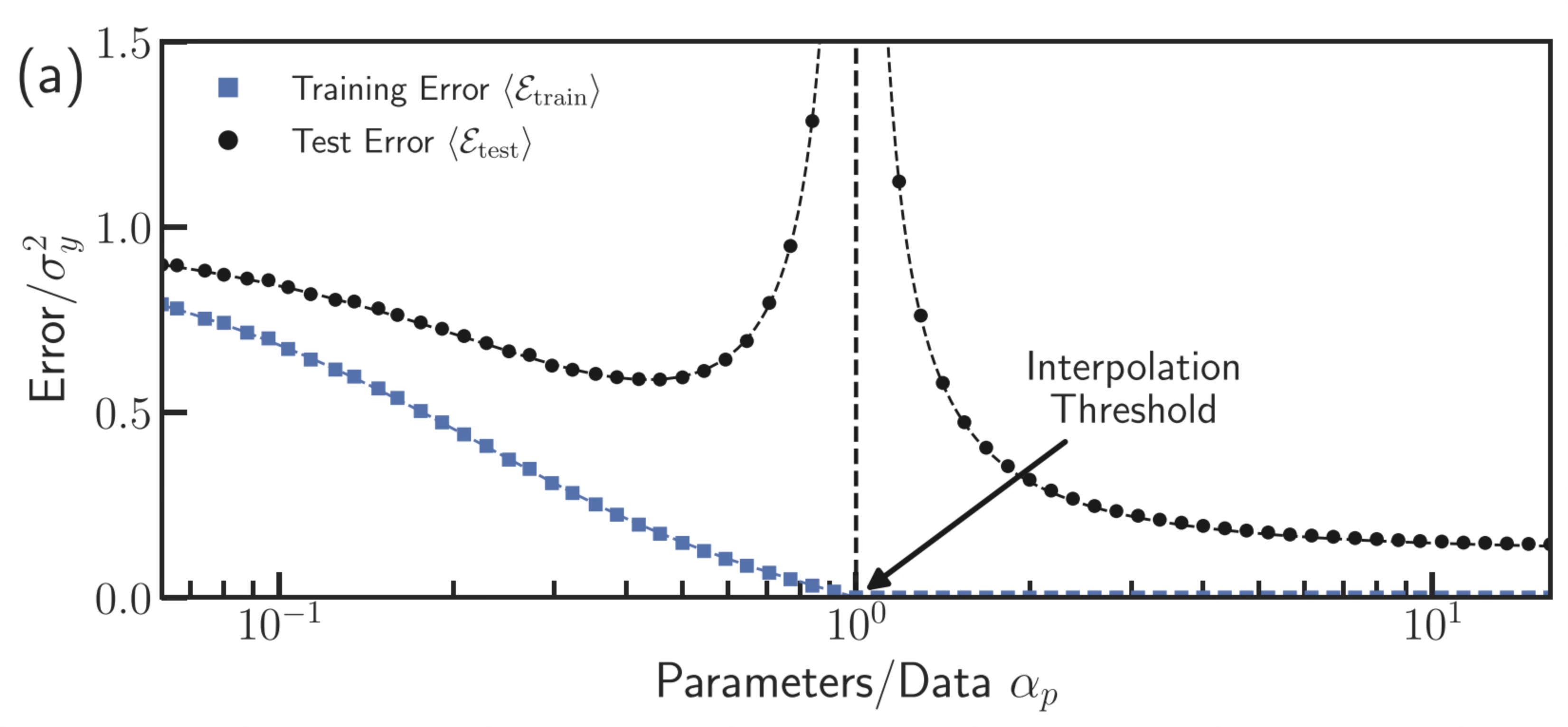 최근 이론은 모델 복잡도가 증가함에 따라 테스트오차가 감소했다가 증가한 뒤, 다시 감소하는 현상을 설명한다. 이를 double descent 현상이라 한다. 딥러닝 모델은 종종 훈련오차가 거의 0이 되는 보간 영역에서 학습된다.
