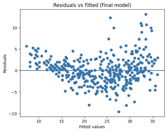 plt.title("Residuals vs Fitted (Final model)")